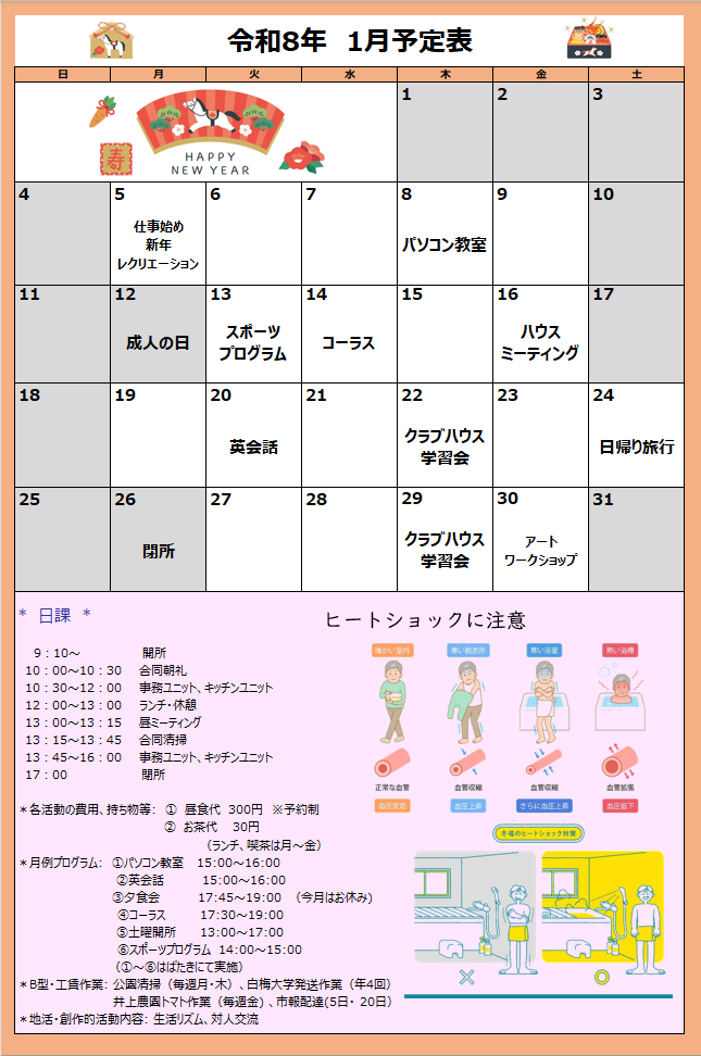 2026年1月予定表